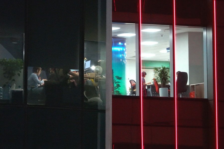 Nếu không đặt trong bối cảnh cận Tết, khung cảnh ấy dễ khiến người ta lầm tưởng đây chỉ là một buổi tối tăng ca quen thuộc trong năm. Điểm khác biệt nằm ở chỗ, số lượng nhân viên xuất hiện sau những ô cửa sáng đèn đã ít hơn ngày thường, nhưng những người ở lại vẫn miệt mài xử lý các phần việc còn dang dở. Không phải tất cả đều phải tăng ca vào thời điểm này, song vẫn có những người chưa thể về sum họp cùng gia đình, trong khi với nhiều ngành nghề khác, năm làm việc đã gần như khép lại.