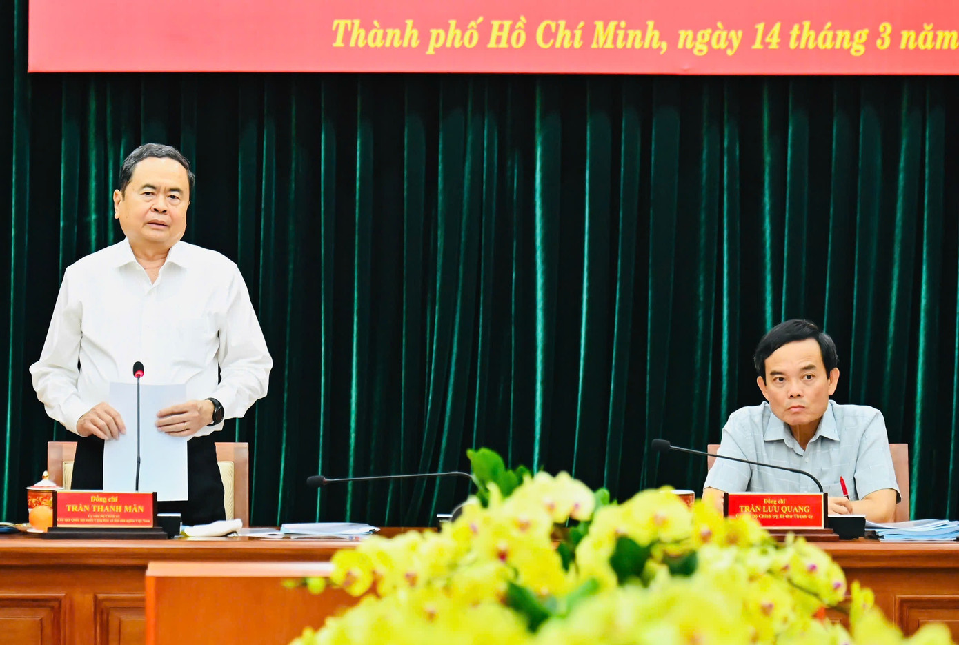 Chiều 14/3, tại TPHCM, Ủy viên Bộ Chính trị, Chủ tịch Quốc hội Trần Thanh Mẫn - Trưởng đoàn Kiểm tra, giám sát số 11 của Bộ Chính trị, Ban Bí thư năm 2026 chủ trì hội nghị công bố quyết định kiểm tra, giám sát của Bộ Chính trị, Ban Bí thư và làm việc với Ban Thường vụ Thành ủy TPHCM.