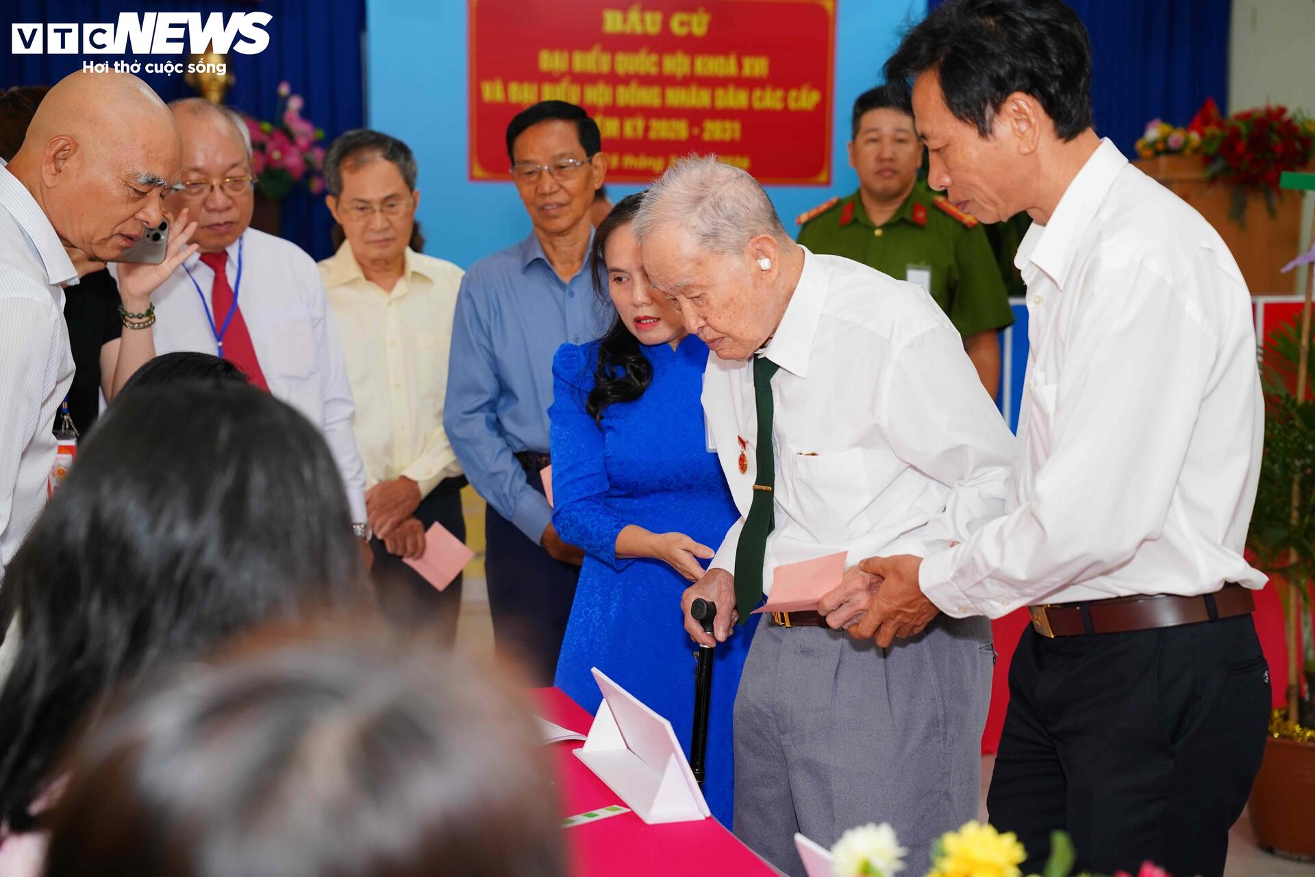 "Nhà gần đây, mà sức vẫn còn, thì mình đi chứ. 80 năm trước bỏ lá phiếu đầu đời trong ngày tổng tuyển cử đầu tiên, 80 năm sau vẫn còn sống thì phải đến bỏ phiếu chứ", Đại tá Nguyễn Văn Tàu phấn khởi chia sẻ sau khi hoàn thành việc bỏ phiếu.