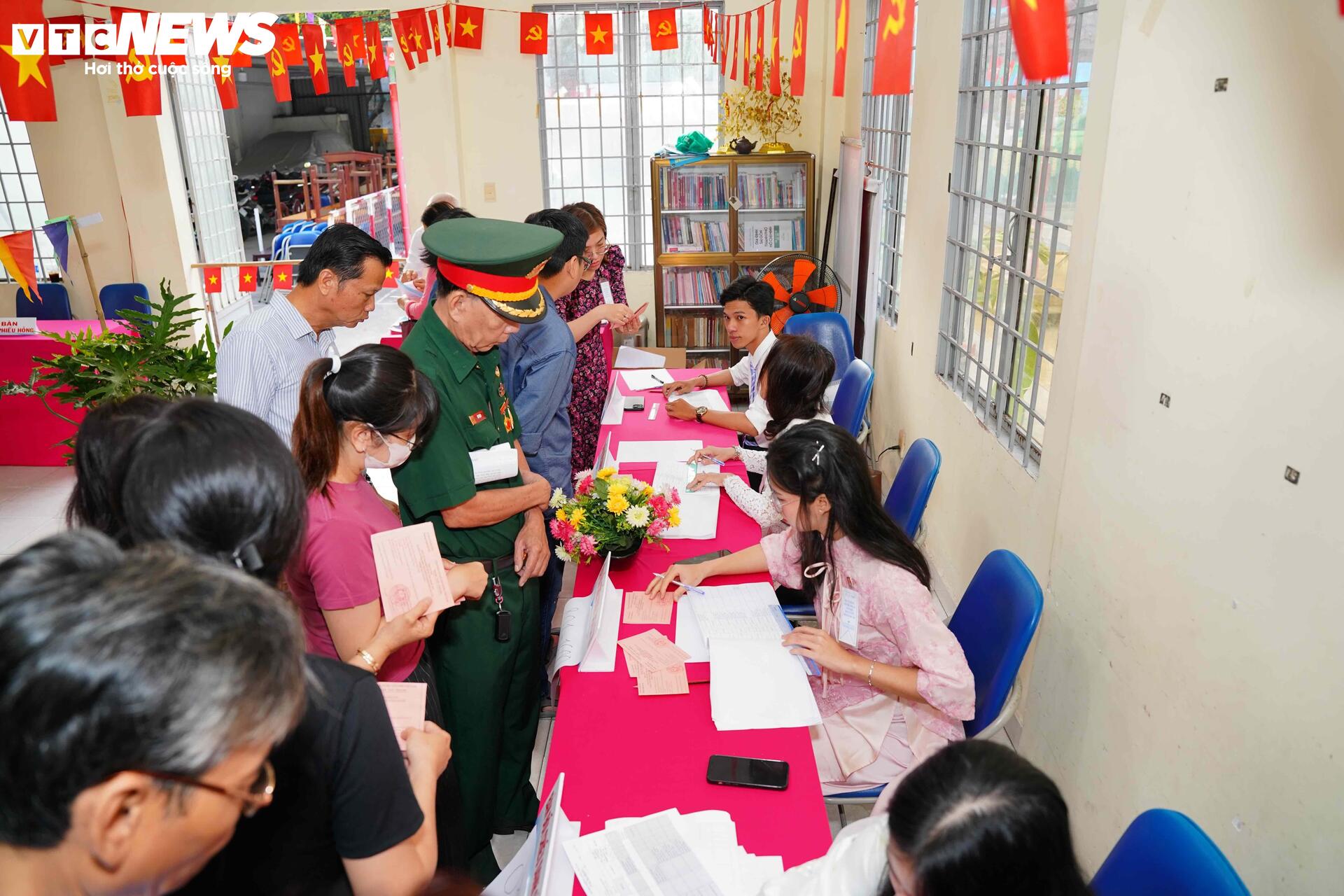 Tại điểm bỏ phiếu số 53 (gồm khu phố 74 - 75, phường Thạnh Mỹ Tây, TP.HCM), từ 6h30, nhiều cử tri đã có mặt để làm thủ tục bỏ phiếu.