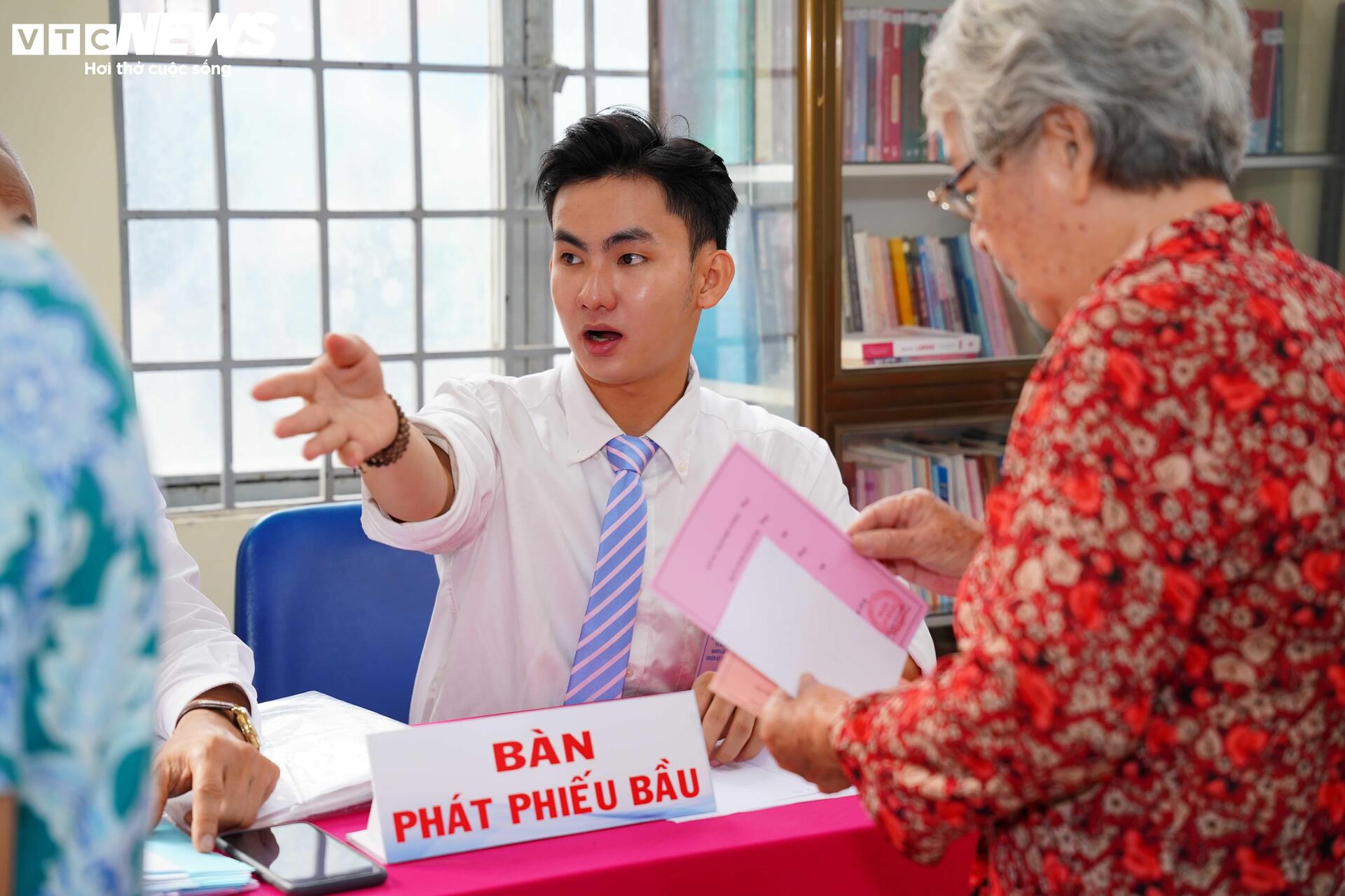 Trong số những cử tri có mặt sớm này, có Đại tá Nguyễn Văn Tàu (huyền thoại tình báo Tư Cang, 98 tuổi) - là cử tri thuộc khu phố 74.