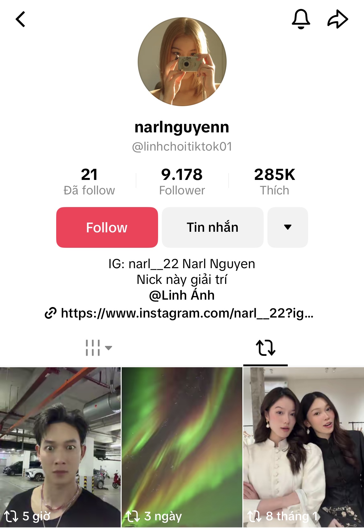Đáng chú ý, Narl Nguyễn đăng tải đoạn clip đu trend "người iu" trên TikTok và Song Luân đã đăng lại về trang cá nhân. Tương tự Narl Nguyễn cũng có động thái trên khi Song Luân đăng clip mới. Chính hành động nhỏ này của cả hai khiến netizen cho rằng đây chính là tín hiệu mà Narl Nguyễn và Song Luân công khai "đánh dấu chủ quyền".