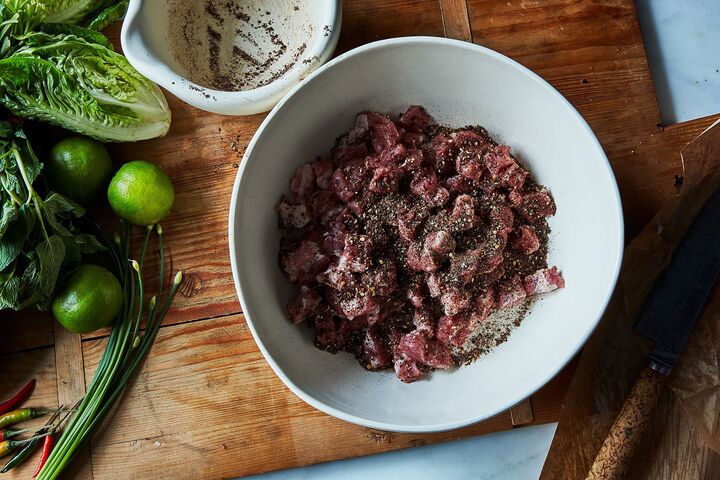 Món gỏi thịt sống được tẩm ướp thơm ngon, thêm chanh để khử khuẩn trước lúc thưởng thức. (Ảnh: Food52)