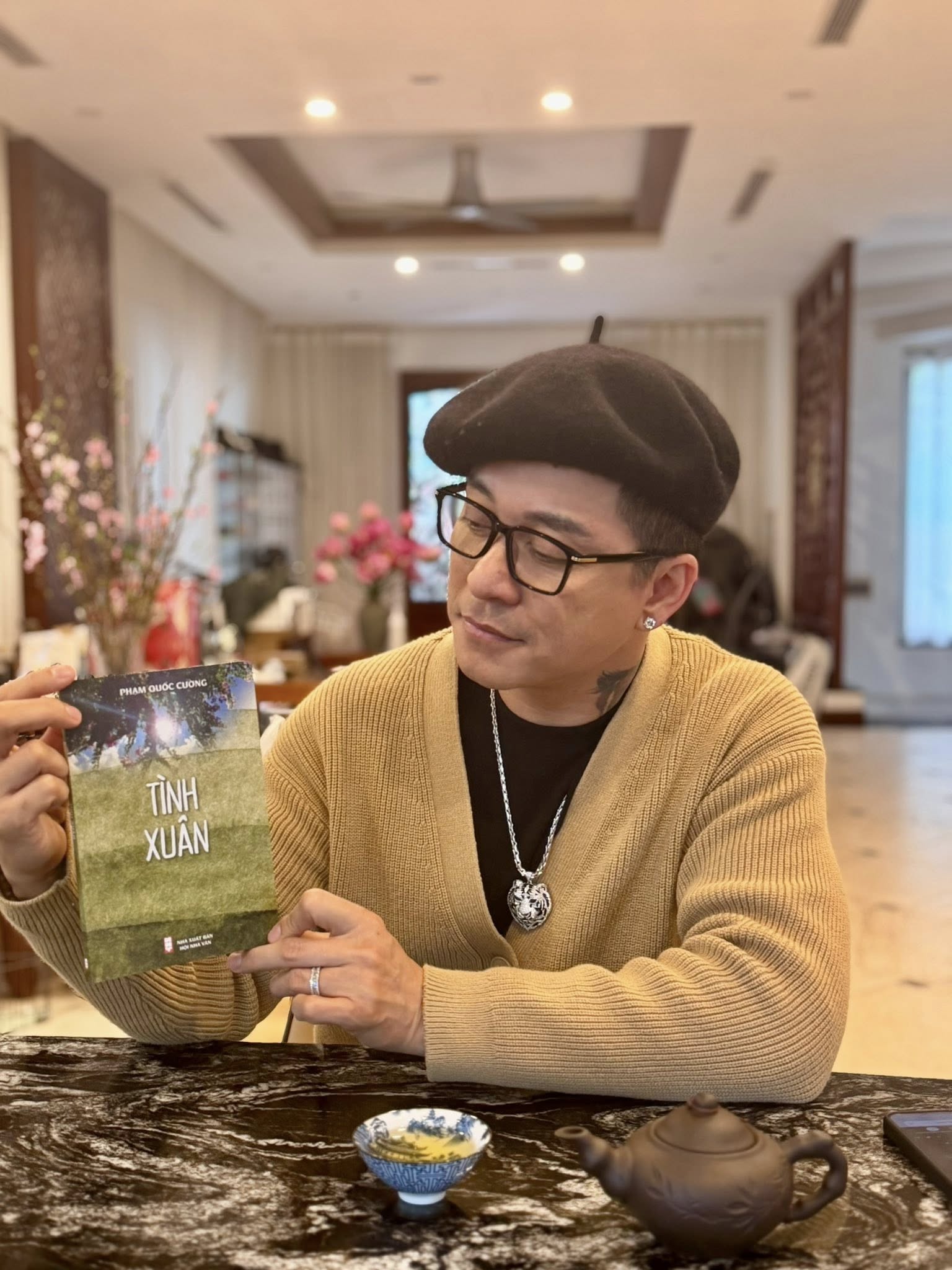Một trong những điểm dễ nhận ra nhất ở căn biệt thự này là sự chăm chút rất kỹ trong cách bày biện. Không gian sống của vợ chồng Tuấn Hưng không giữ nguyên một kiểu quanh năm mà thường được decor lại theo từng dịp đặc biệt như lễ, Tết. Vào những ngày đầu năm, căn nhà gần như ngập tràn hoa tươi và cây cảnh, tạo cảm giác rực rỡ, nhiều sinh khí. Điều này phần nào phản ánh rõ sở thích của cả hai vợ chồng, bởi họ đều là những người yêu cây cỏ, thích không gian sống có màu xanh và cảm giác gần gũi với thiên nhiên.