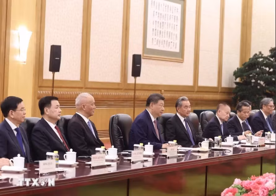 Sáng 15/4, sau lễ đón cấp Nhà nước tại Đại lễ đường nhân dân, Thủ đô Bắc Kinh, Trung Quốc theo nghi thức cao nhất dành cho nguyên thủ quốc gia, Tổng Bí thư, Chủ tịch nước Tô Lâm có cuộc hội đàm với Tổng Bí thư, Chủ tịch nước Trung Quốc Tập Cận Bình.